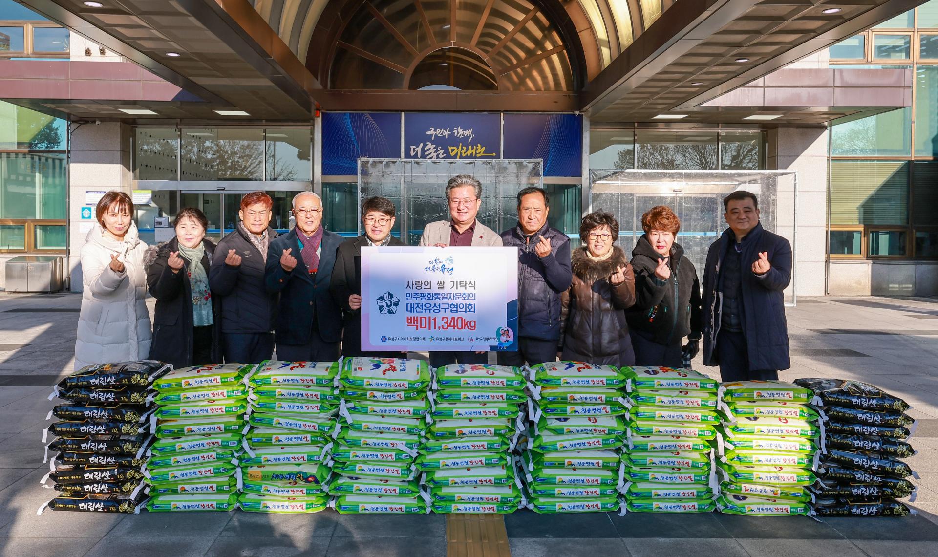 민주평화통일자문회의 대전유성구협의회(회장 이상욱)는 4일 행복네트워크에 백미 1,340kg을 기탁했다. 이번 쌀은 제22기 민주평통 대전유성구협의회 출범식에서 축하 화환 대신 받은 것으로, 관내 복지관과 지역아동센터, 장애인시설 등에 골고루 전달될 예정이다.